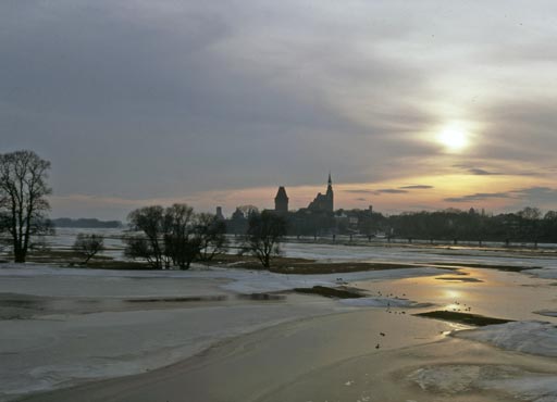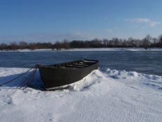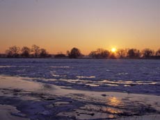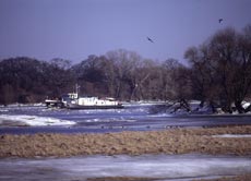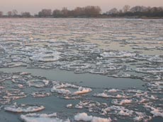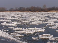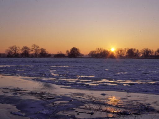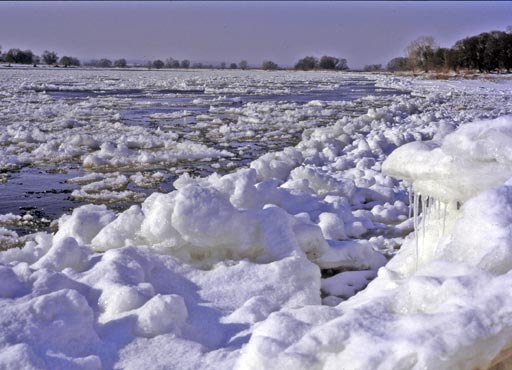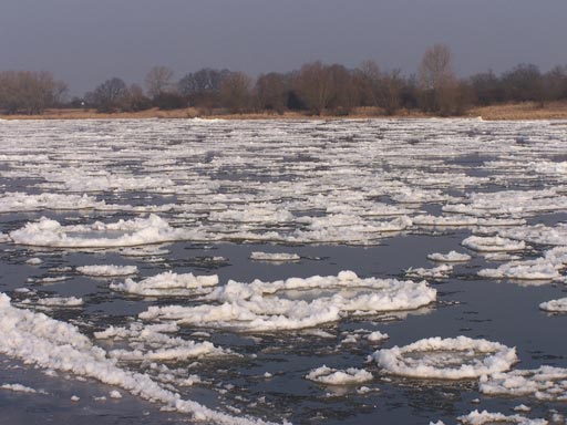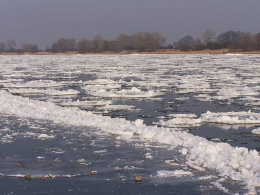 Eisgang, Eisschur und Eisversatz sind besonders dynamische Kräfte der winterlichen Elbe. Bei höheren Wasserständen reibt das Eis an Bäumen und Sträuchern. Es entstehen typische Scheuerstellen. Bei der Eisschur arbeitet das Eis wie eine Rasierklinge, so daß alle Sträucher und jungen Bäume in einer bestimmten Höhe abgeschnitten werden. Eisversatz entsteht, wenn die zugefrorene Elbe im Februar/März wieder auftaut und zu Fließen beginnt. Die Eisschollen stapeln sich dann zu hohen Türmen auf.