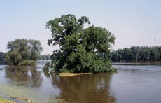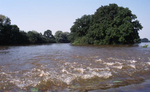 Der Fluß ist der Schöpfer der Aue. Die Aue lebt vom Fluß und seinen wechselnden Wasserständen. Auwälder, Auwiesen, Kolke und Altarme – sie alle sind auf Hochwasser angewiesen und darauf eingestellt. Das Hochwasser ist das Bestimmende für eine Aue. Es ernährt, speist und reinigt die Aue. Mit dem im Hochwasser herangeführten und dann sedimentierten Boden werden Nähr- und auch Schadstoffe festgelegt und dem Stoffkreislauf entzogen. Keine andere Landschaft vermag das.