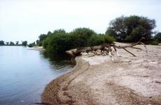 In den Buhnenfeldern der Elbe sind bei Niedrigwasser große, offene Sandflächen zu finden. Sie ähneln den Inseln, Kies- und Sandbänken früherer Zeit und sind offene konkurrenzfreie Lebensräume für eine ganze Fülle von Tier- und Pflanzenarten. Hier liegt teilweise sehr grobes Material vor, Sand und stellenweise sogar Kies. An anderen Stellen kommt es zur Ablagerung von sehr feinem Material, so daß Schluffe und Tone gebildet werden.